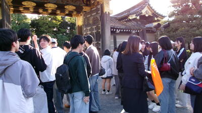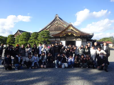 旅行第1日目の主な動きは、空路で京阪地区に入った後すぐに二条城を見学しました。生徒たちは、二条城の中の「うぐいす張りの廊下」や「二の丸御殿の障壁画」等に厚く感動していました。